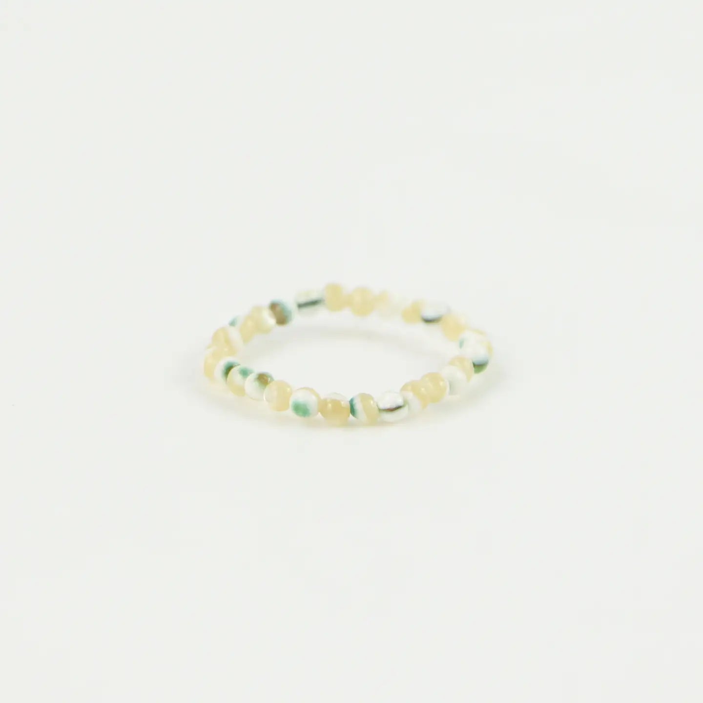 - Hergestellt aus natürlichen und gefärbten schimmernden Troca-Rundperlen, die auf ein elastisches Band aufgezogen sind.
