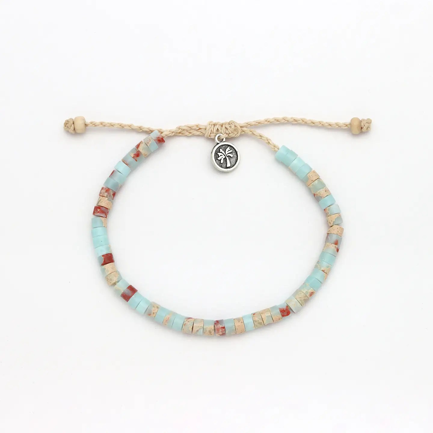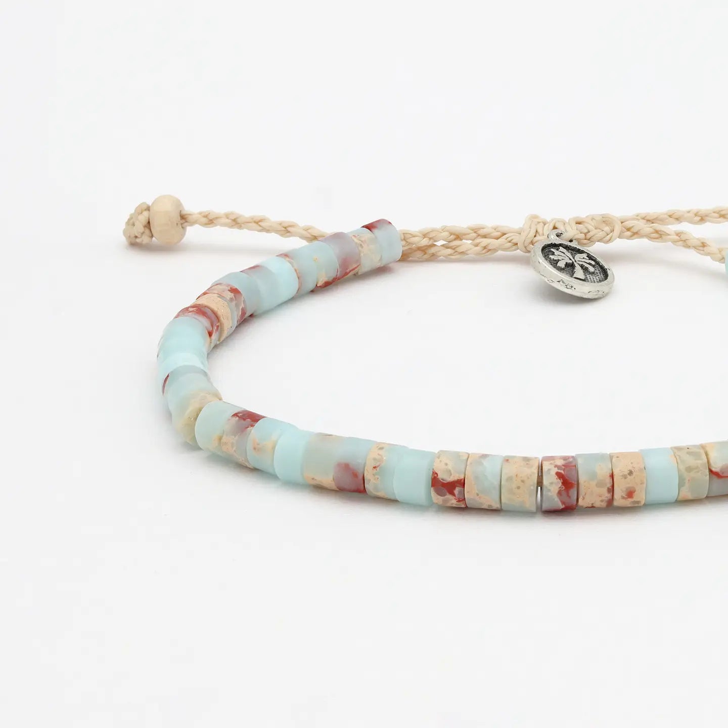 Das Lake Toba Perlen-Fußkettchen ist mit unregelmäßig geschnittenen Agalmatolith-Steinen gefertigt, von denen jeder auf seine eigene Weise einzigartig ist.