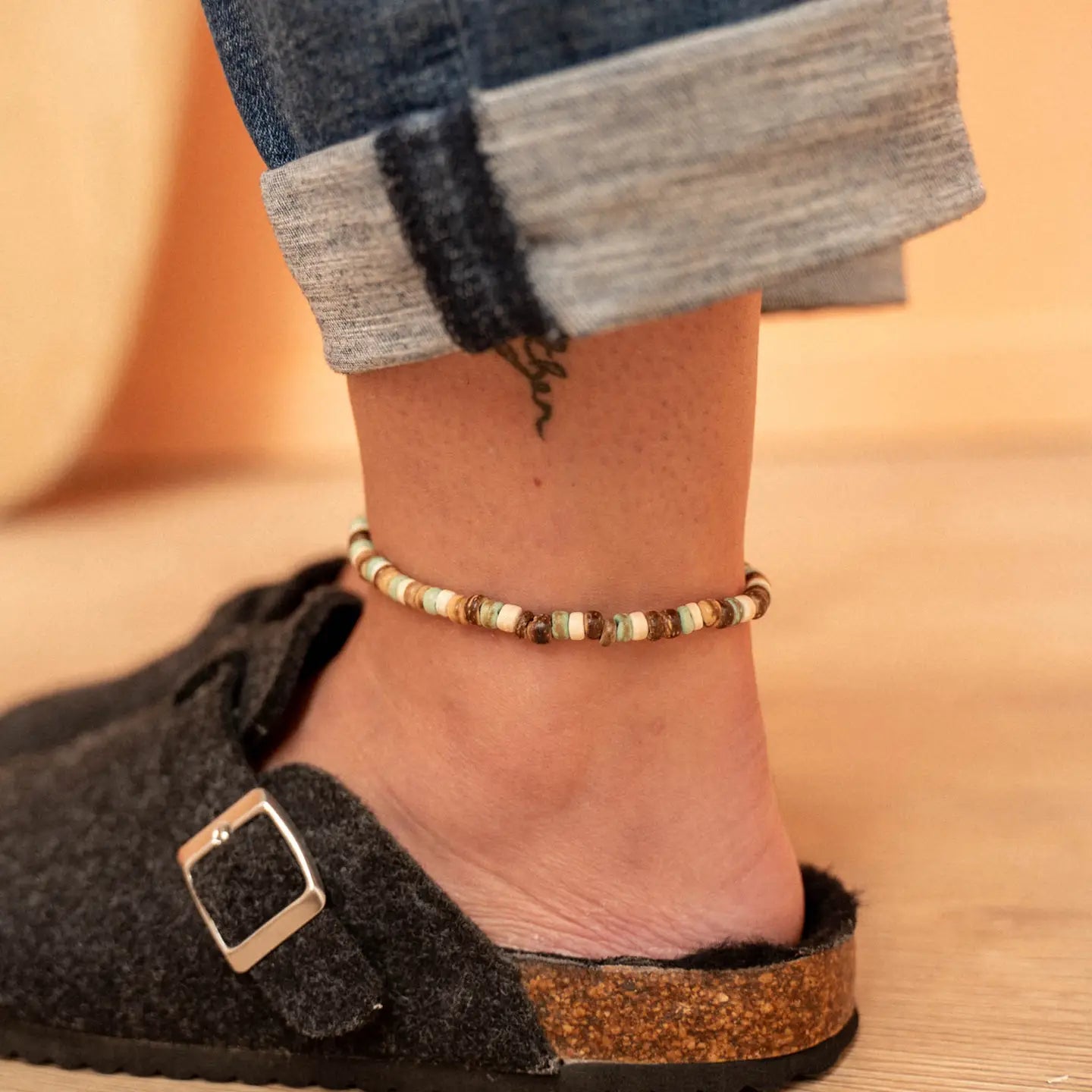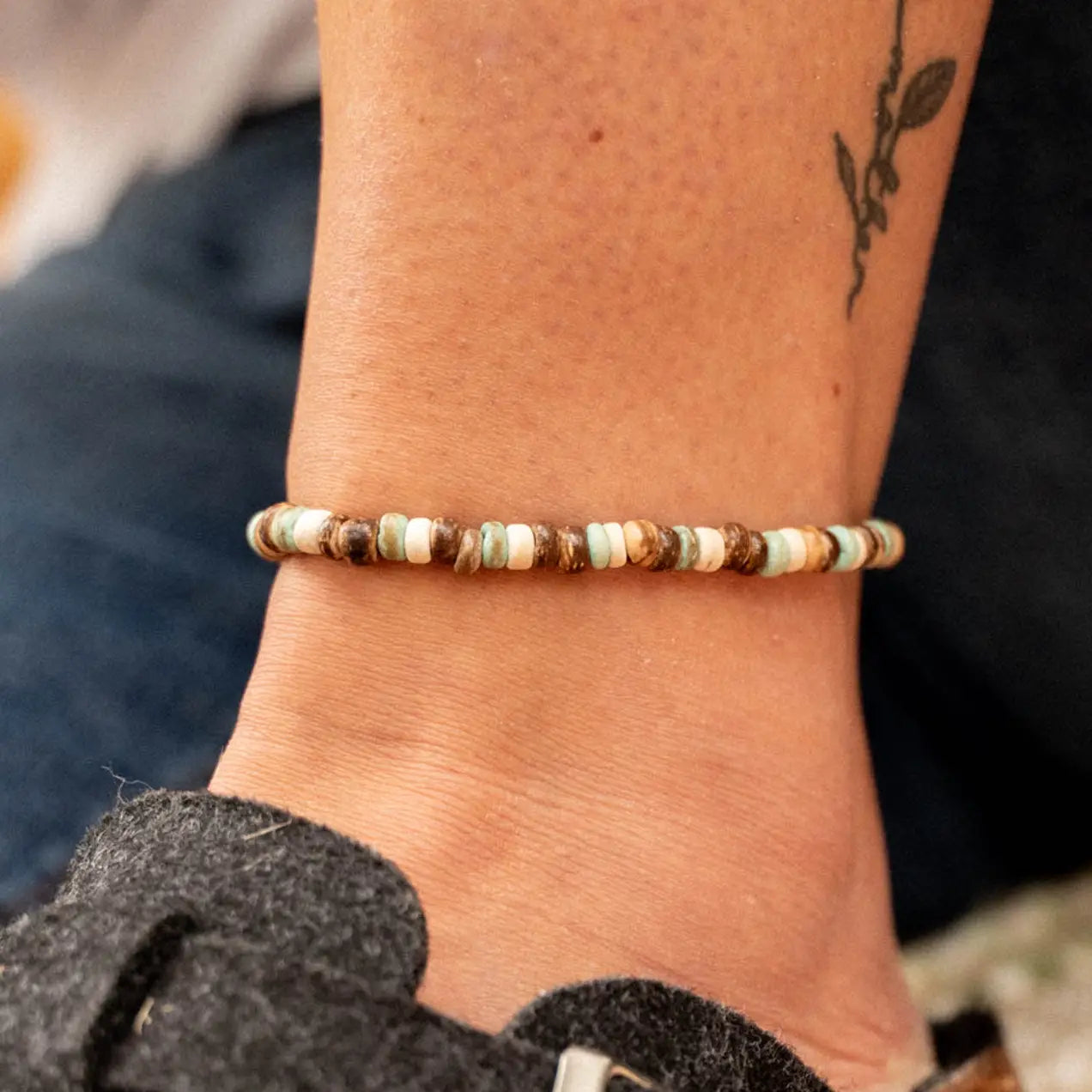 Das Laut Coconut Wood Beaded Anklet kombiniert eine zeitlose Farbpalette mit strukturierten Holzperlen und verleiht ihm einen entspannten Stil, der mühelos wirkt.